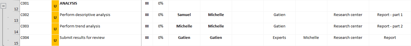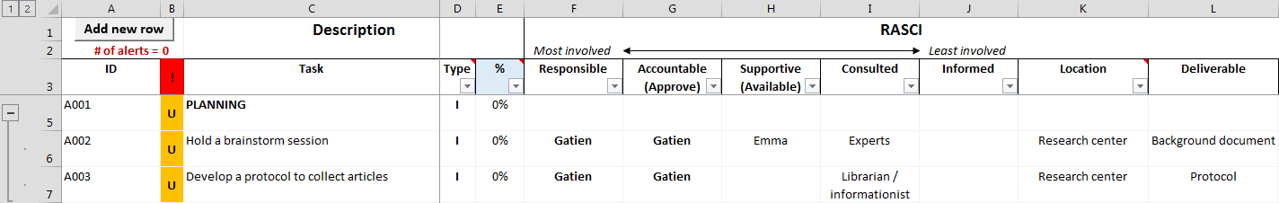 This option is often forgotten in newer versions of the responsibility matrix (ex: RACI in the Project Management Book of Knowledge or PMBOK), as it appears less well defined than the two previous roles. However, when a project requires that recurrent administrative tasks be performed, it becomes very handy.